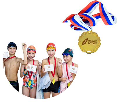 Участие в Гонках ракет для всех учеников школы SwimRocketKIDS. Возможность подтверждения и присвоения разрядов по плаванию.